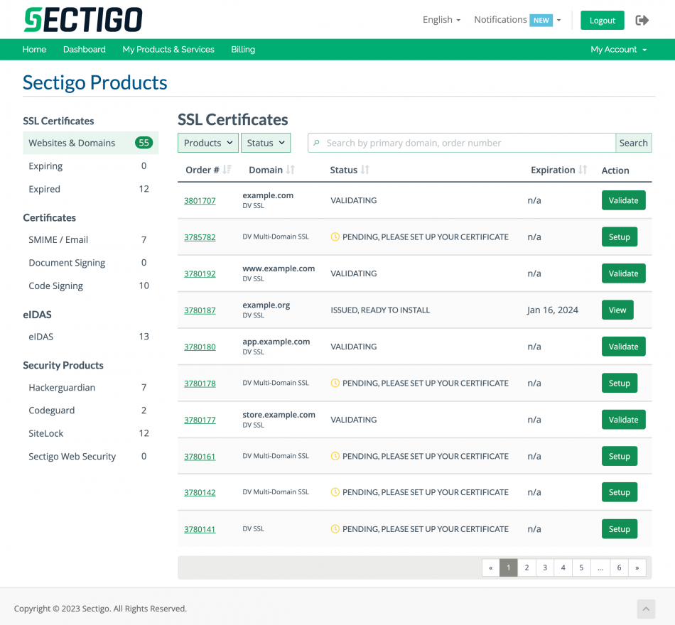 通过我们的客户管理控制台,您可集中管理所有Sectigo安全产品:实时查看证书生命周期状态、执行签发/重签操作、一键续订即将过期的证书。此功能可帮助您 避免证书意外过期导致的网站宕机风险 、节省手动管理的时间成本。